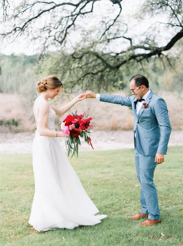 “Texas weddings can be tricky... especially if you’re determined to have an outdoor ceremony. As this couple realized, they needed to shoot for Spring or Fall if they wanted any semblance of cooperation from the weather. So they took their time planning and went for a March wedding at The Creek Haus, a property of Vista West Ranch in Dripping Springs. Read on for more from the Bride! ~photography by Austin Wedding photographer, Alyssa Nikole.”
