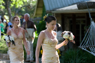 We also designed and created hair flowers that included chocolate orchids and ivory peacock feathers.
