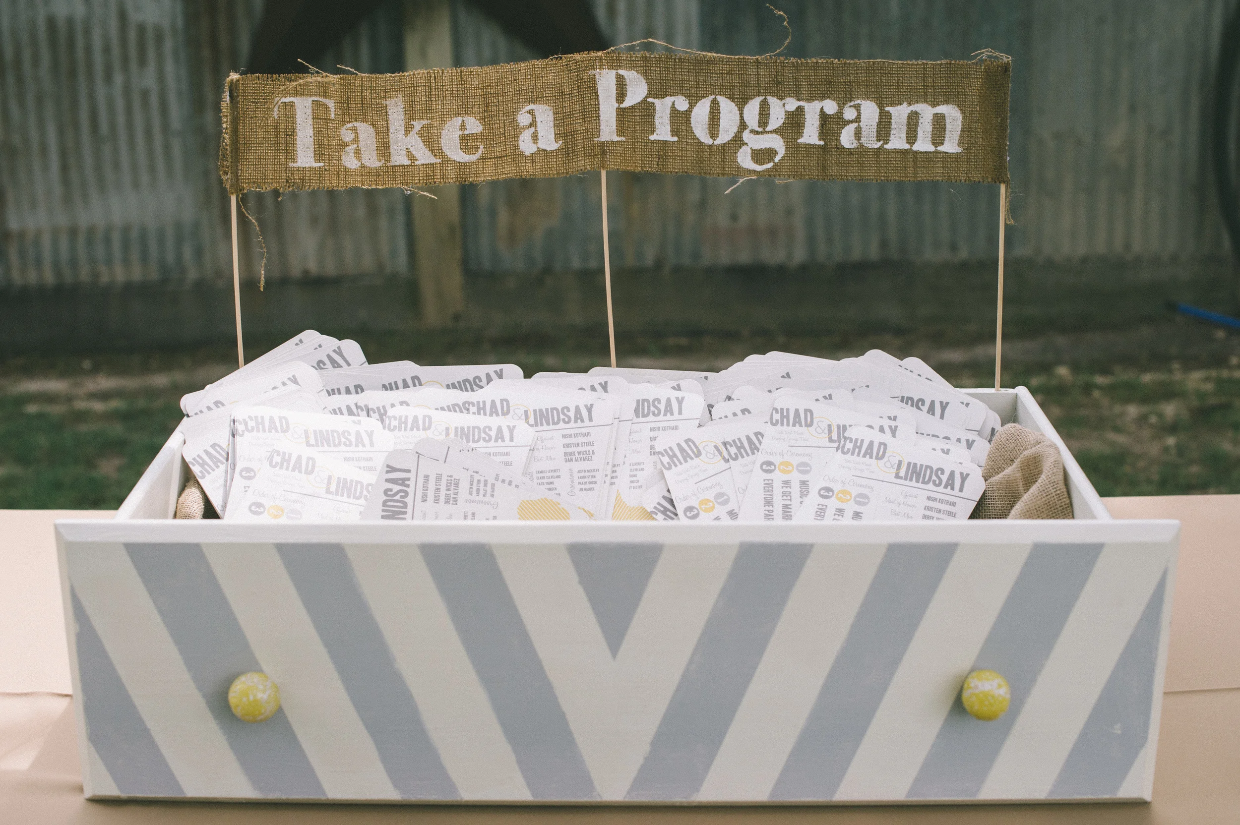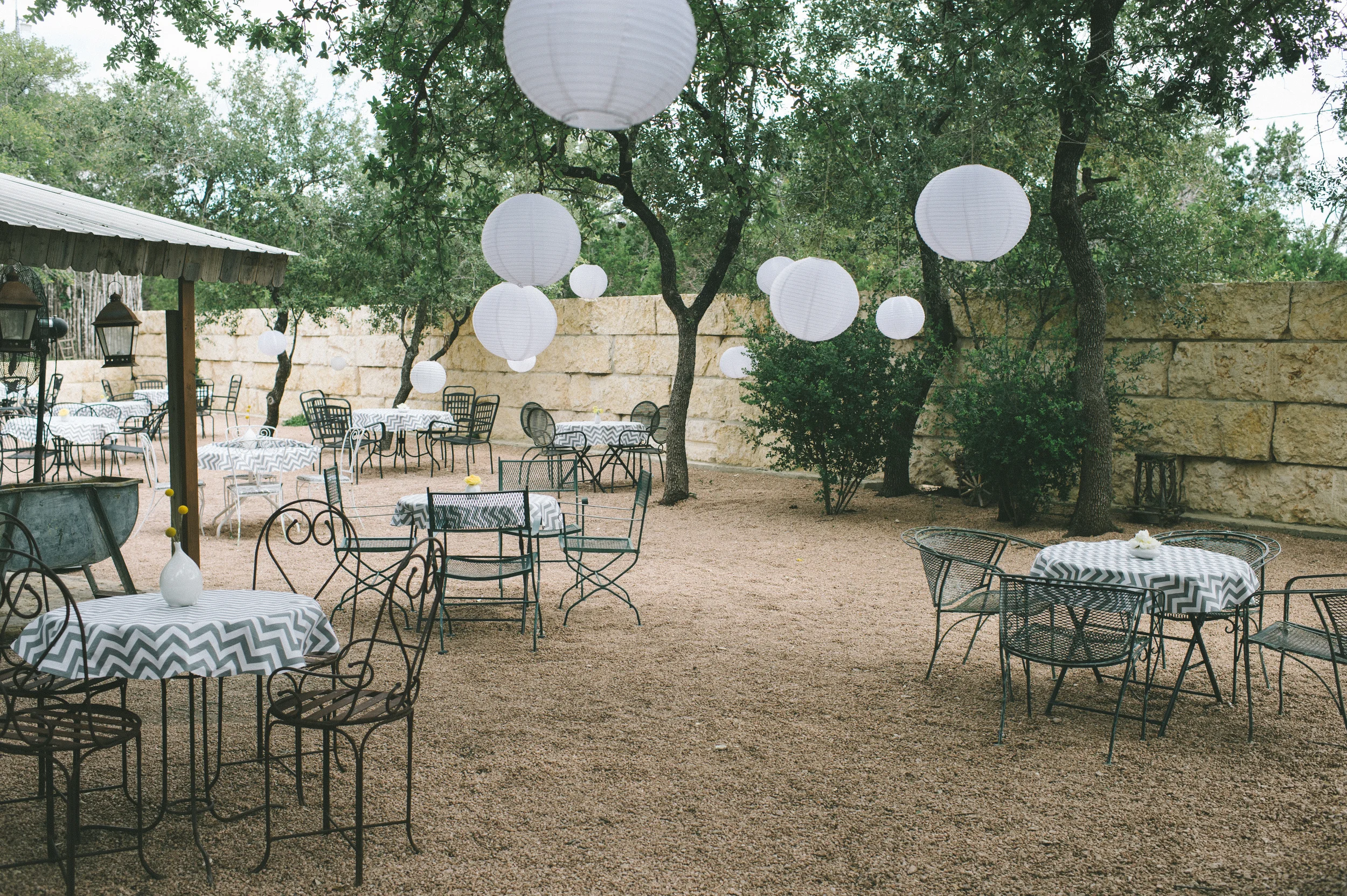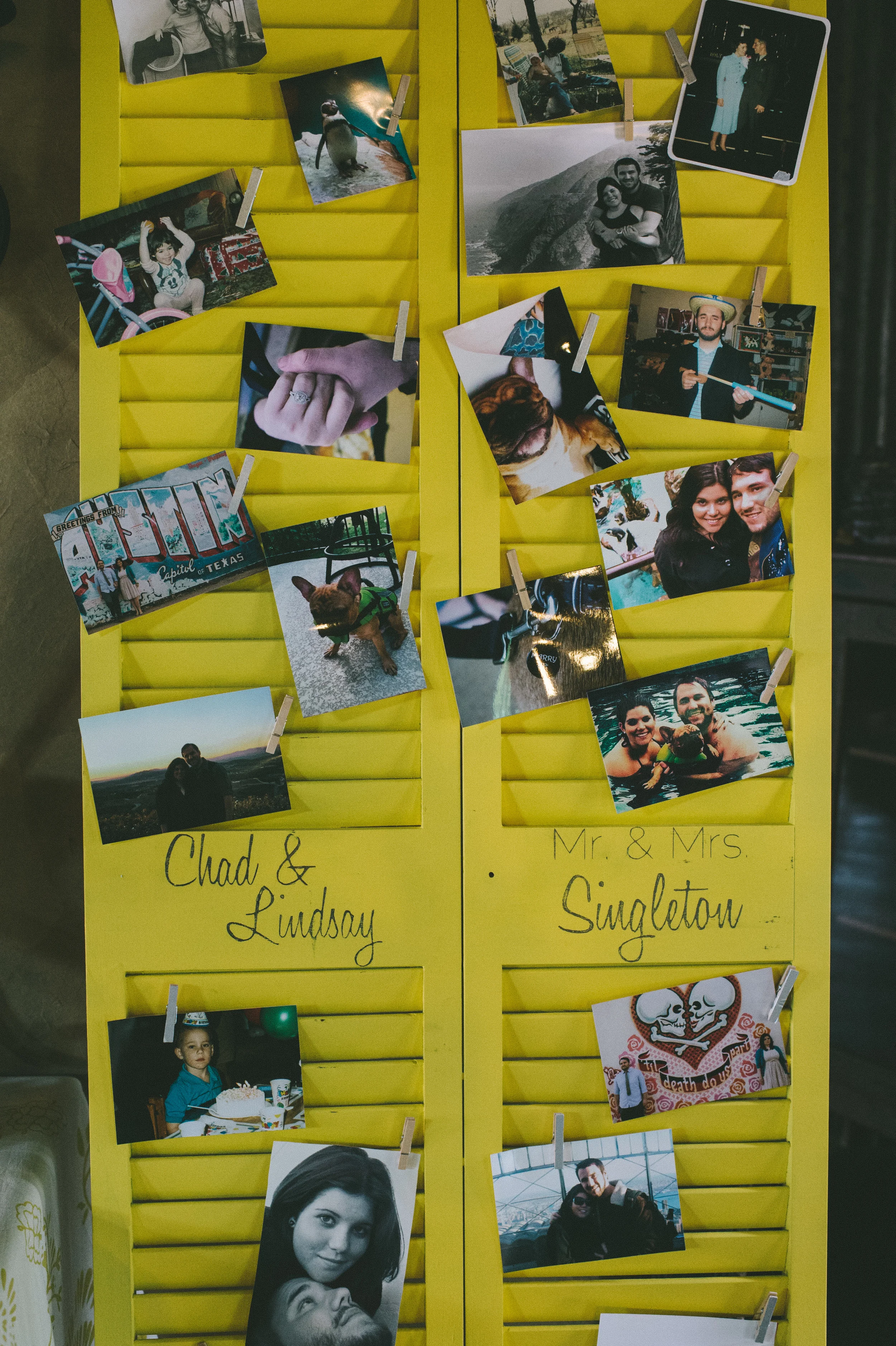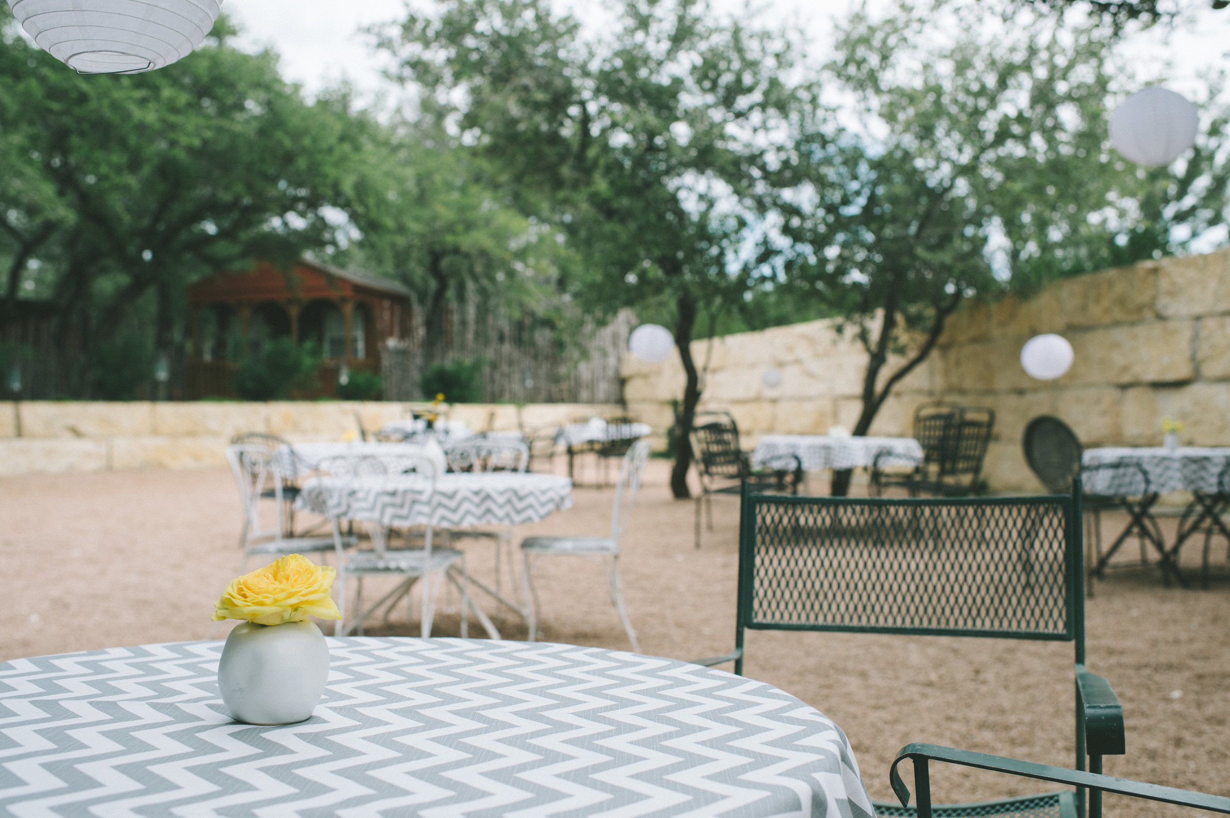 The other things we focused on were reception and cocktail hour decor. To do this we turned to what we had. For example, we turned an old dresser cabinet into a place to store programs during the ceremony. This took two colors of Martha Stewart paint, painter’s tape, and Anthropologie knobs and finished! Banners are also super easy to make. Visit Hobby Lobby and buy the fabric, cut it and hot glue it to whatever fabric you want. Utilizing inexpensive finds to fit with your needs is another strategy. For instance, we painted two old doors bright yellow and used them to hold our photos. To really make a statement at cocktail hour, my amazing mother made tablecloths for each table (20?) in Vista West Ranch's Biergarten. None of these things happened over night. It may be time consuming, but it was perfect and got us the look we wanted.